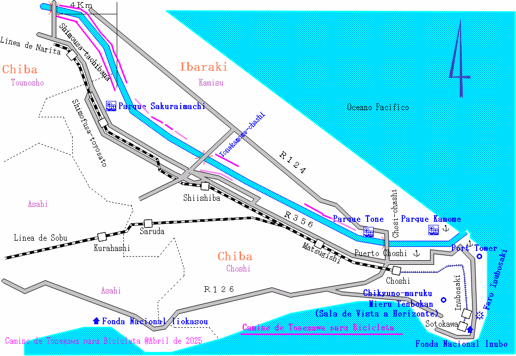 4km entre Ciudad de Choshi y Tonegawa-ohashi