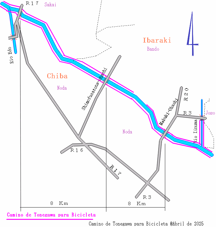 Mapa para bicicleta #8 por la orilla del Tonegawa