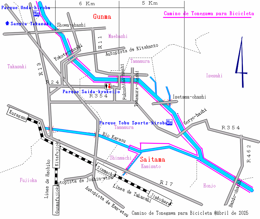 Mapa para bicicleta #14 por la orilla del Tonegawa